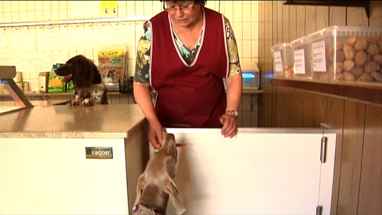 80 Prozent sind Stammkunden. Einer von ihnen ist Oliver Holverscheidt, professioneller Hundebetreuer: „Hier gibt es viele Sachen, die ich sonst nirgendwo kriege. Sogar Ziegenbein mit Haaren. Meine Hunde lieben das und es hat den Vorteil, dass durch die Haare der Darm ordentlich durchgereinigt wird. Ich hol auch schon mal einen 12 Kilo Pansen, schneide den dann selber klein und frier Portionsweise ein.