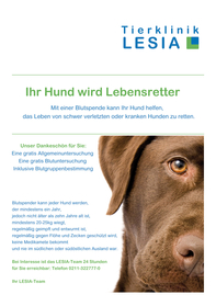 Im Infoflyer der Klinik steht: „Blutspender kann jeder Hund